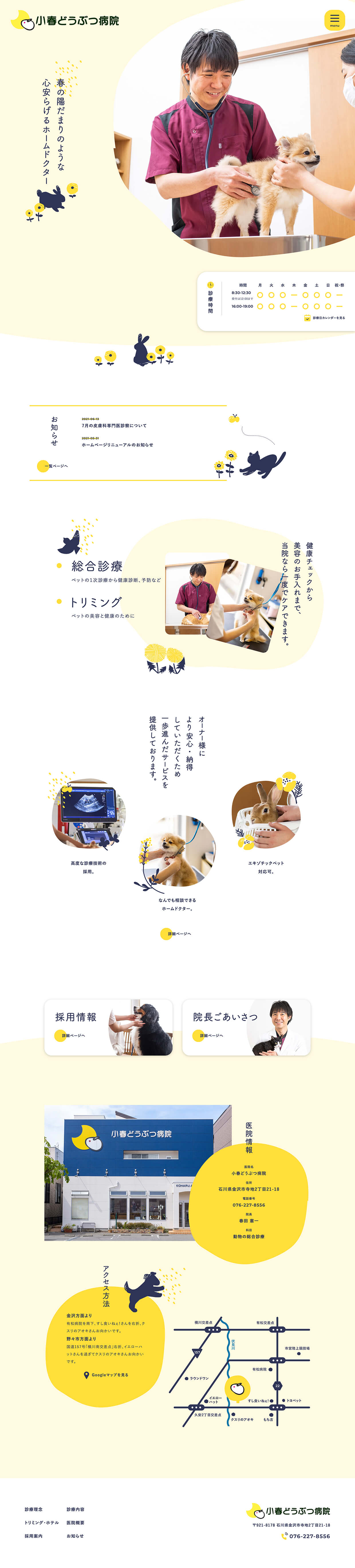 石川県金沢市にある「小春どうぶつ病院」様のコーポレートサイトを制作させていただきました。