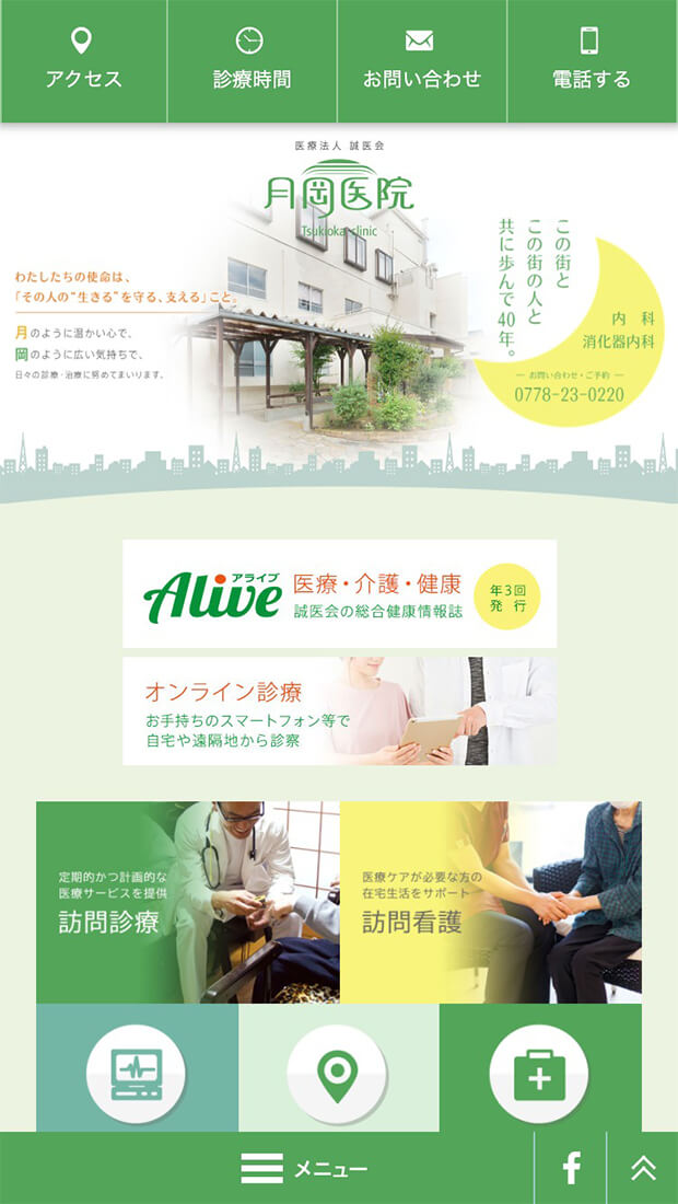 福井県越前市にある、内科・消化器内科の診療をメインに地域の介護福祉へも貢献する「月岡医院」様のコーポレートサイト制作、採用サイト、各グラフィックデザイン制作をさせていただきました。