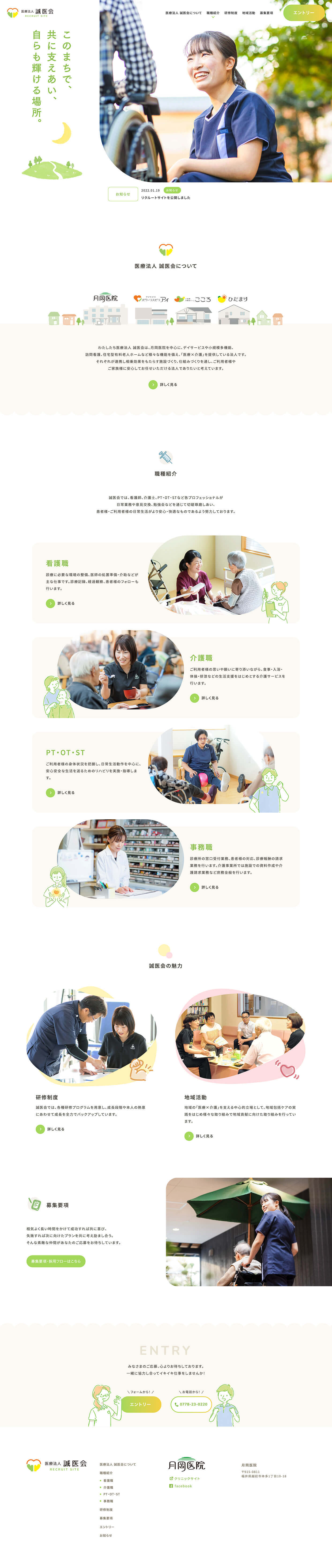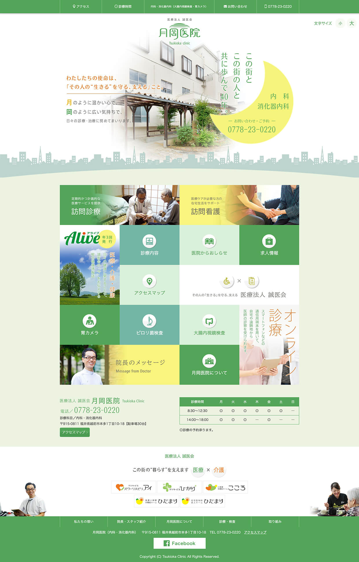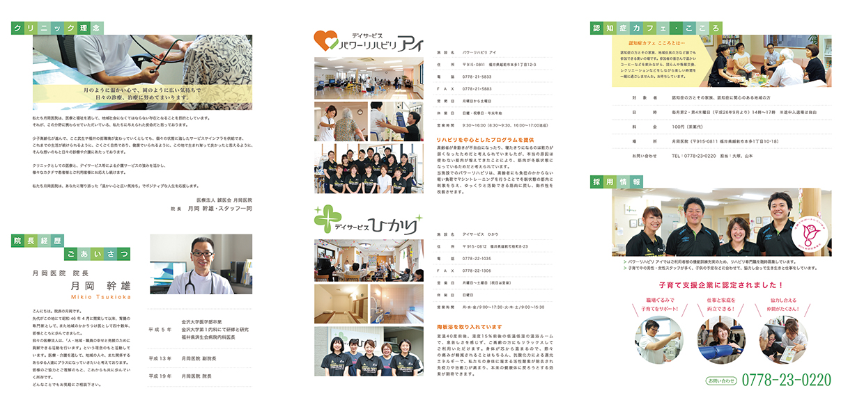 福井県越前市にある、内科・消化器内科の診療をメインに地域の介護福祉へも貢献する「月岡医院」様のコーポレートサイト制作、採用サイト、各グラフィックデザイン制作をさせていただきました。