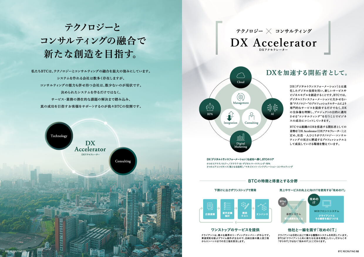 テクノロジーとコンサルティングの融合を最大の強みに、挑戦と成長を続ける株式会社ビッグツリーテクノロジー&コンサルティング様。「Challenge&Growth」をリクルートメッセージとした新卒採用ブランドを立ち上げました。 新卒者にとって、近い将来(3~5年後)がイメージできるよう、 先輩社員のリアルをキービジュアルに、見据える世界観をデザインとコンテンツに落とし込んでおります。