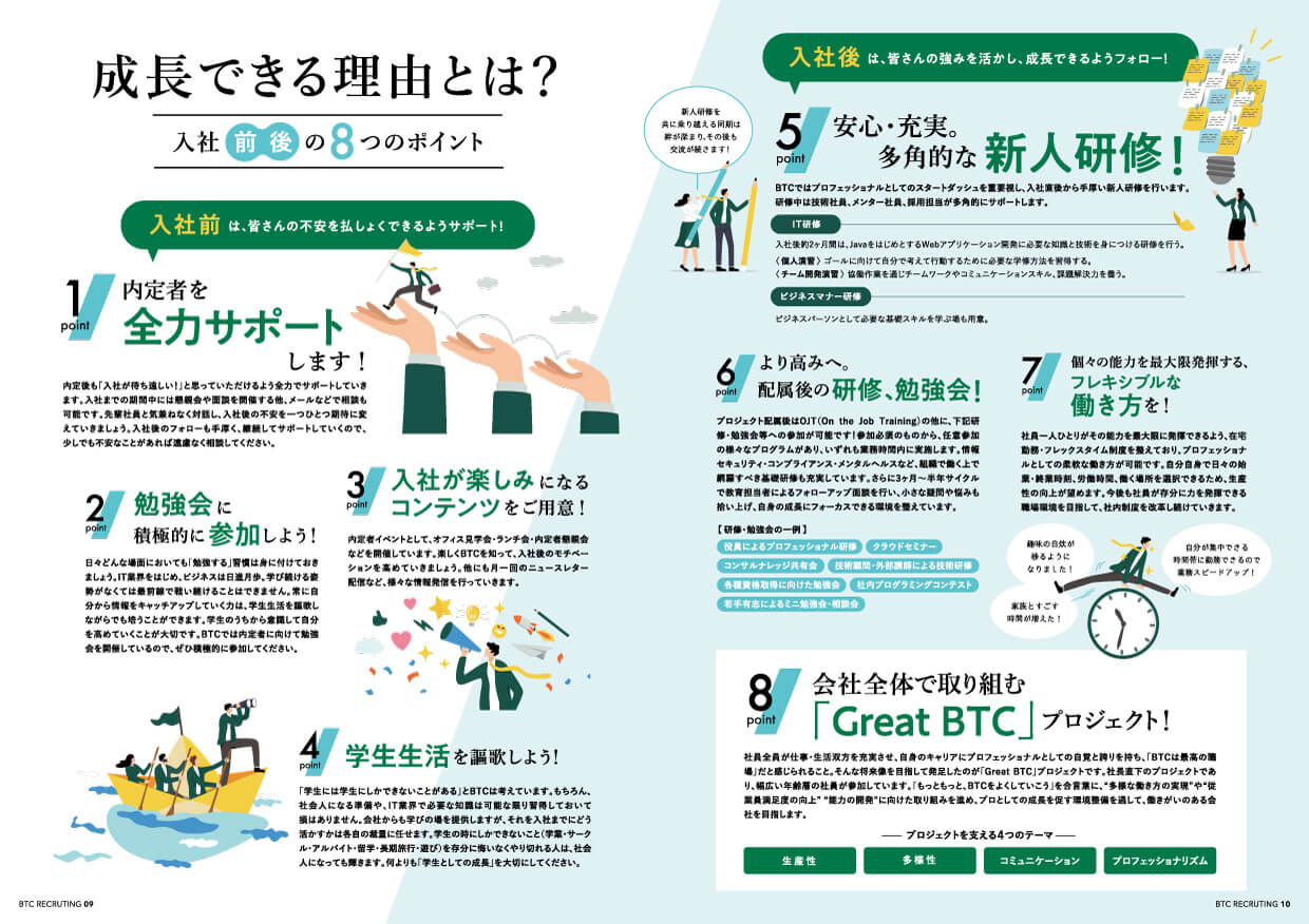 新卒採用パンフレットは差別化を図り、特別コンテンツを設けるなど求職者の方がより共感いただけるような施策を取り入れています。併せてオリジナルファイルケースを制作し、装丁を整えました。