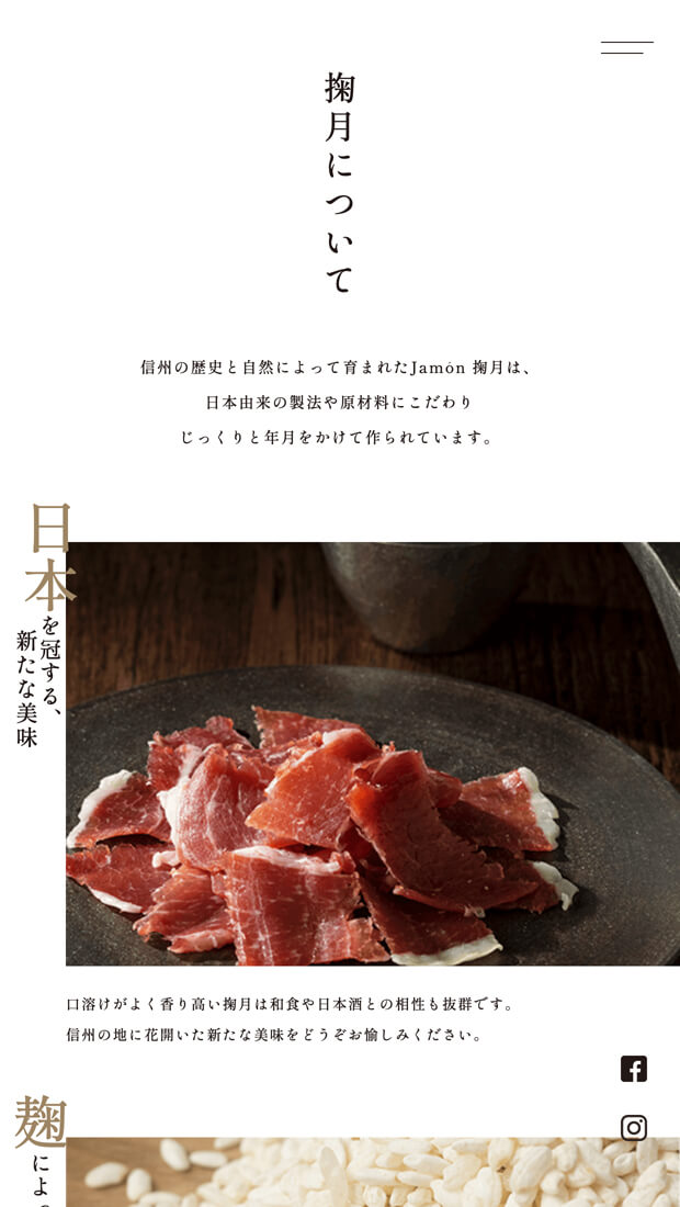株式会社SATOKA様が「長野の気候や食文化を活かし時間の経過が価値になるものを作りたい」との想いでスタートさせた日本製生ハム「jamon掬月」の製造販売事業をブランド立ち上げからお手伝いさせていただきました。