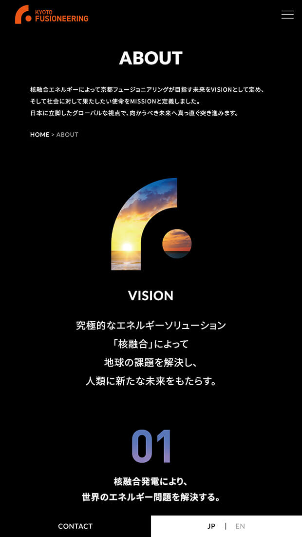 私たちが生きる上で密接に関わってくるエネルギー問題。京都フュージョニアリング様はその地球課題に対して、究極的なエネルギーソリューション「核融合」によって人類に新たな未来をもたらすことを志しています。その想いや組織の価値を一貫したブランドメッセージに乗せて、ロゴやコーポレートサイトに展開しています。