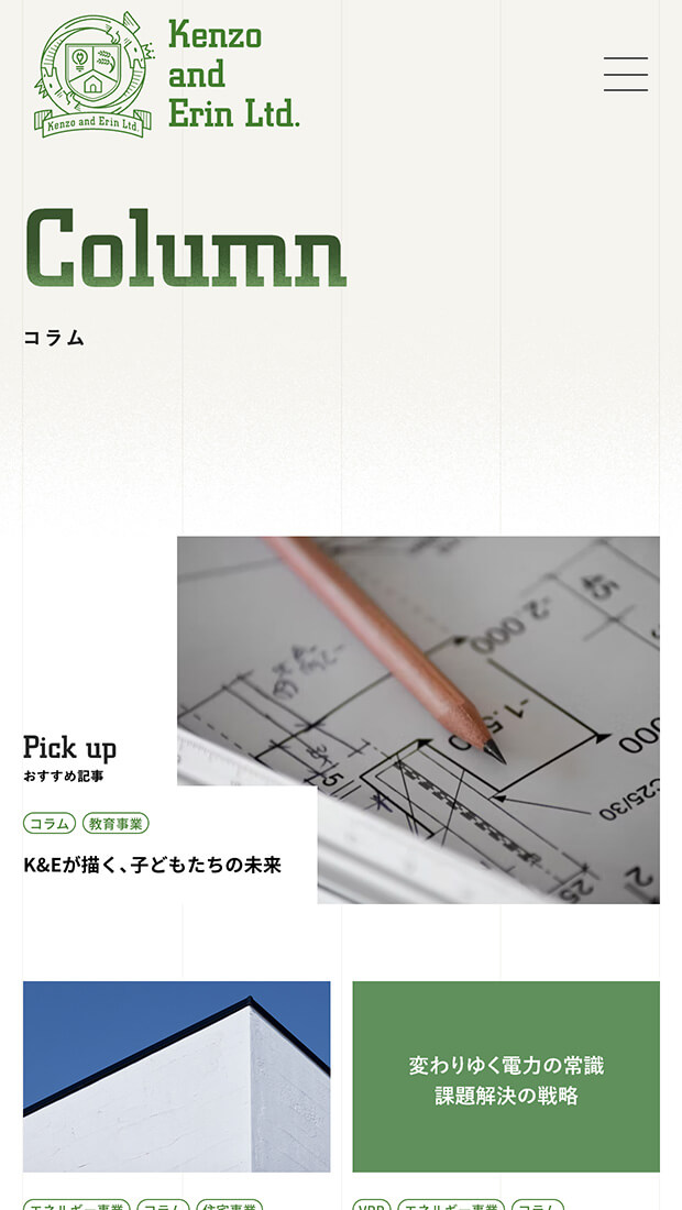 また、4つの事業に紐づくCOLUMN/PROJECTの見せ方にもこだわり、K&Eの事業理解がより深まる構造を目指しました。
