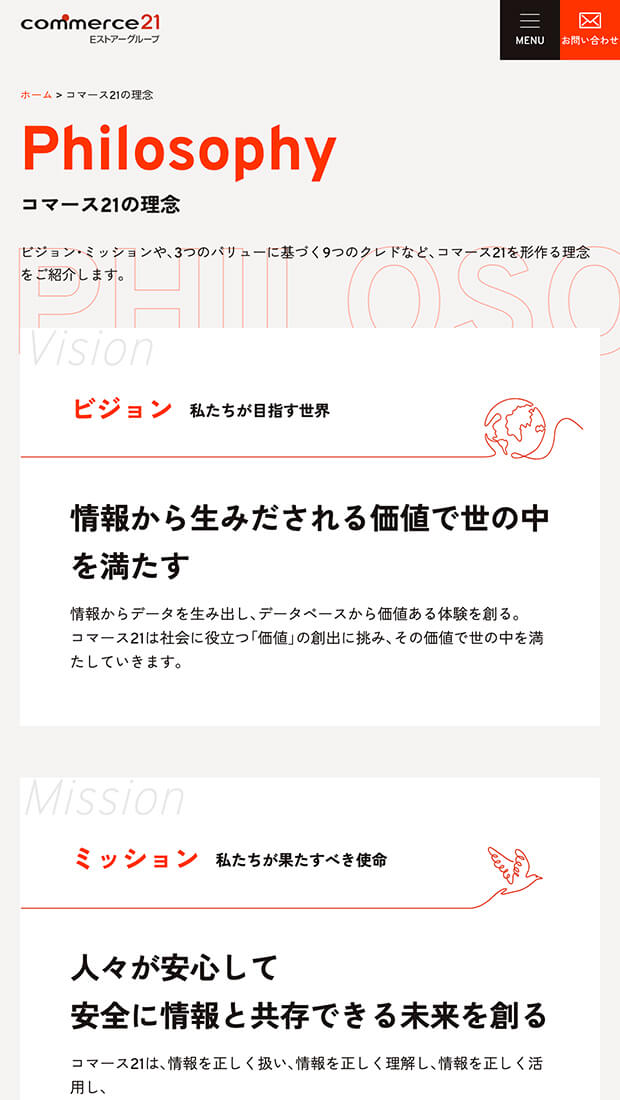 弊社ではそれに伴うVMVやクレドをはじめとする企業理念の再構築、そして、ロゴやコーポレートサイト等を中心とした各種クリエイティブ開発に至るまで、様々なブランディング施策をご支援しています。