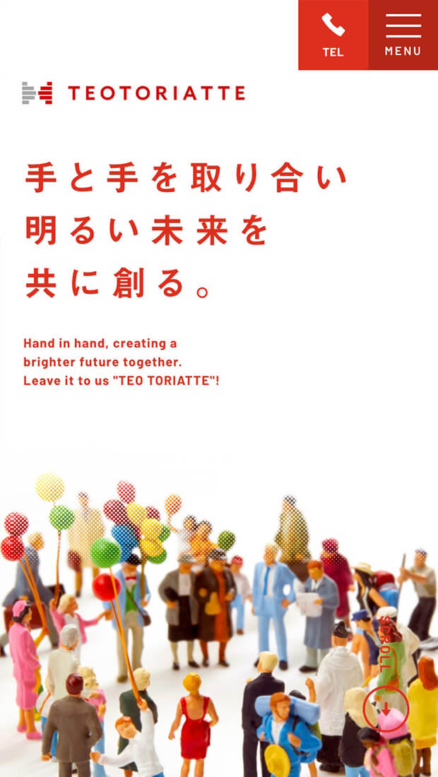 石川県金沢市でマンション管理や居住支援・賃貸住宅管理など人々の暮らしにまつわる様々なサービスを展開されているTEO TORIATTE株式会社様。ロゴは、社名やタグラインにもなっている「手と手を取り合う」をイメージしデザイン。またコーポレートサイトは企業カラーでもある赤を基調とし、社会貢献にかける情熱や人と人とがつながるワクワク感を表現しました。