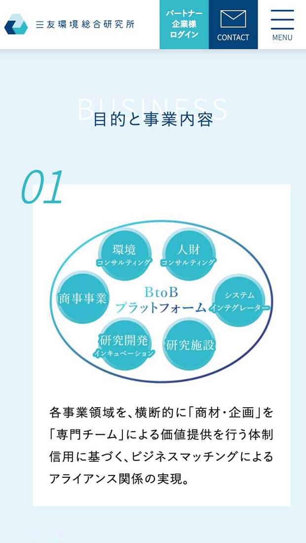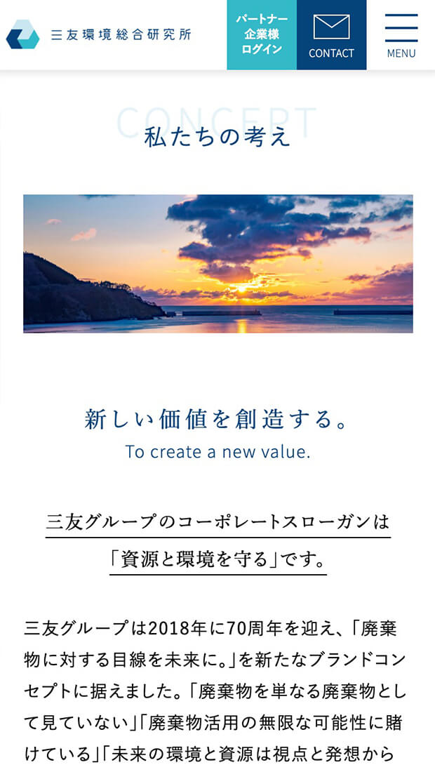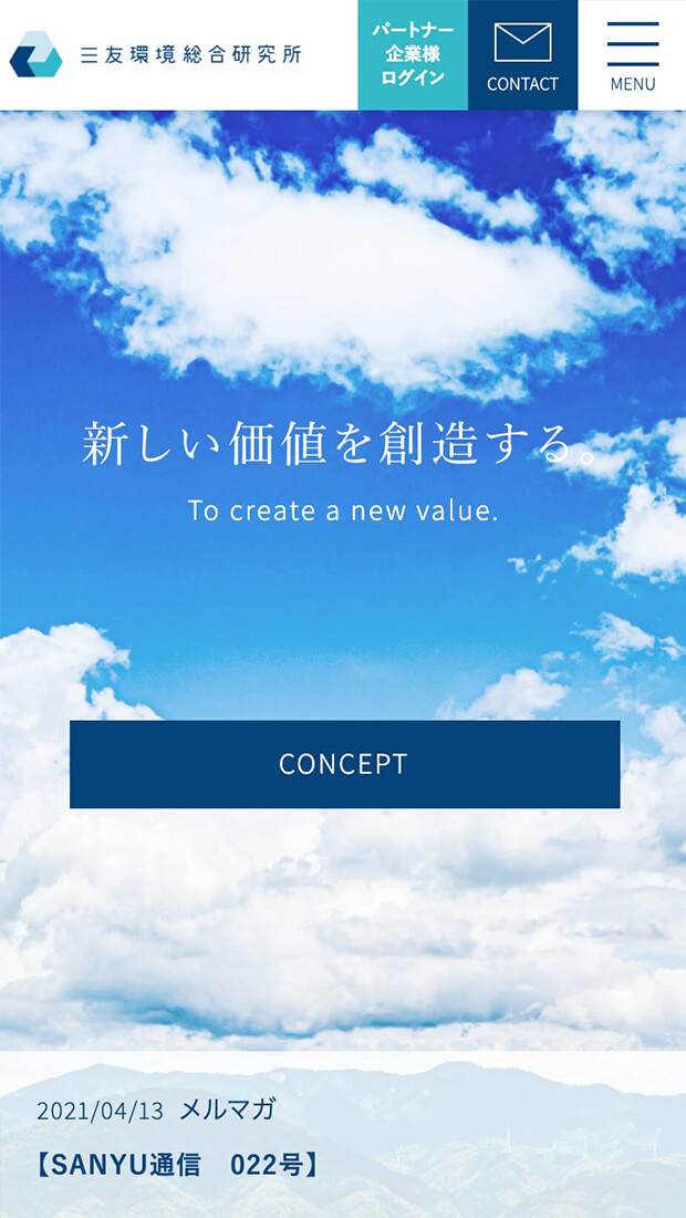 70年の歴史を持つ三友プラントサービスのグループ会社である、「三友環境総合研究所」様のロゴマークとコーポレートサイトを制作させていただきました。三友環境総合研究所様は環境に関する優れた商材やノウハウを持つパートナー企業様とともに持続可能な社会の実現に向けたSDGs活動を推進されております。コーポレートサイトでは、三友環境総合研究所様の考えや事業内容の他に、優れた技術を持つパートナー企業様や各種商材をご紹介。