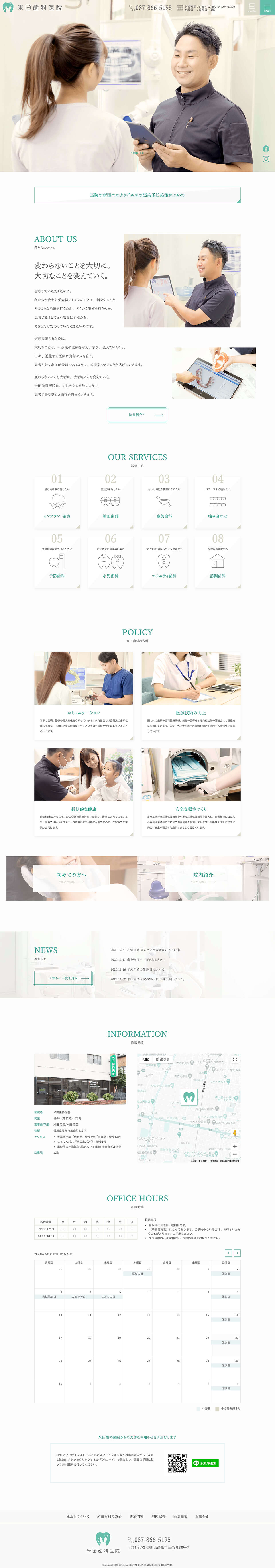 香川県高松市にある米田歯科医院様のロゴデザインとコーポレートサイトを制作させていただきました。長い歴史を誇る同院は、建物の壁面に描かれたウサギの絵で地域の方々に親しまれてきました。またウサギは幸運や円満のシンボルであることや、大きな耳で患者さまの声に耳を傾けたり、新しい技術や情報収集を行っていく姿勢など、様々な意味を込めてウサギと歯をモチーフにしたロゴをデザインいたしました。コーポレートサイトでは「変わらないことを大切に。大切なことを変えていく。」を基本コンセプトとし、何よりも患者さんファーストの診療方針を伝え、幅広い診療科目ごとに情報量も充実させております。サイト公開直後より関係各所から好評の声をいただいております。