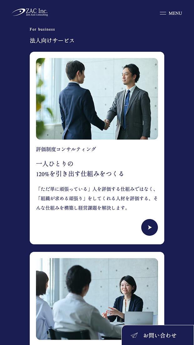 ZAC様らしい世界観を構築するとともに、多彩な事業を整理・分類し、迷わず目的のサービスにたどり着く情報設計も兼ねることでユーザーの共感と理解を両立するWebサイトとなりました。