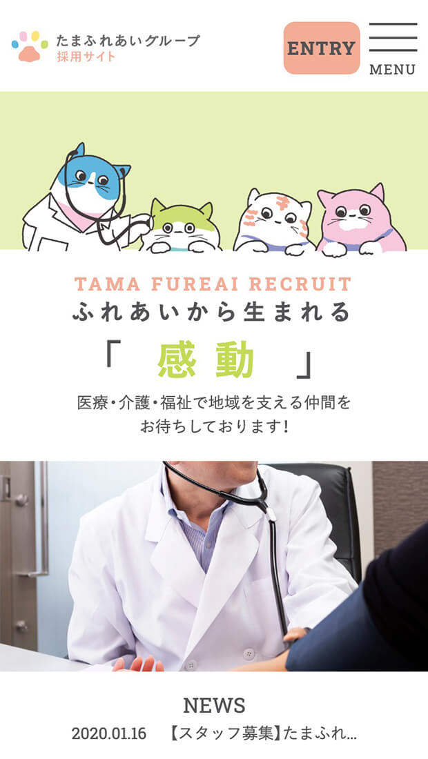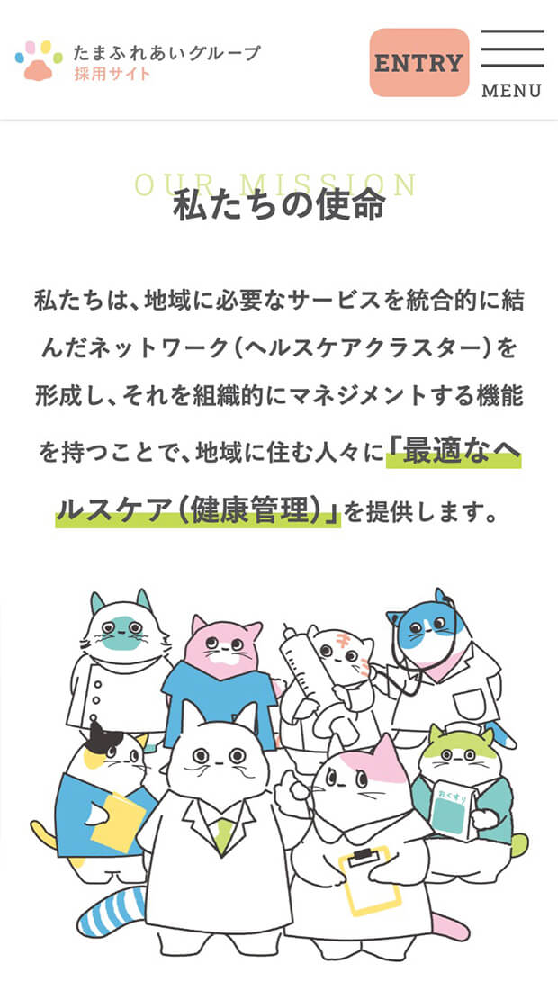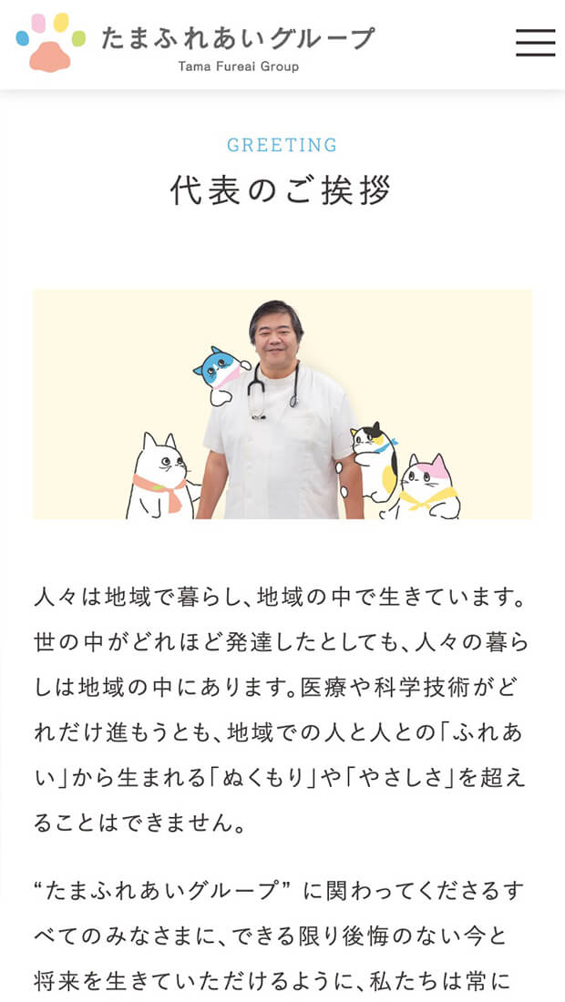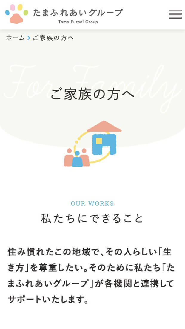 川崎市多摩区を中心に訪問診療や訪問看護を行なう「たまふれあいグループ」様。居宅介護事業所や訪問看護と連携することで在宅で過ごす患者様やご家族を医療・介護を含め総合的に支えられております。今回、グループ全体のブランディングをご依頼いただき、メディカルブランディングに基づき、全体ブランド設計からロゴ、キャラクター、WEBサイト各種制作まで行なっております。地域に住む人々への「最適なヘルスケア(健康管理)」構想のお役になれることを願っております。