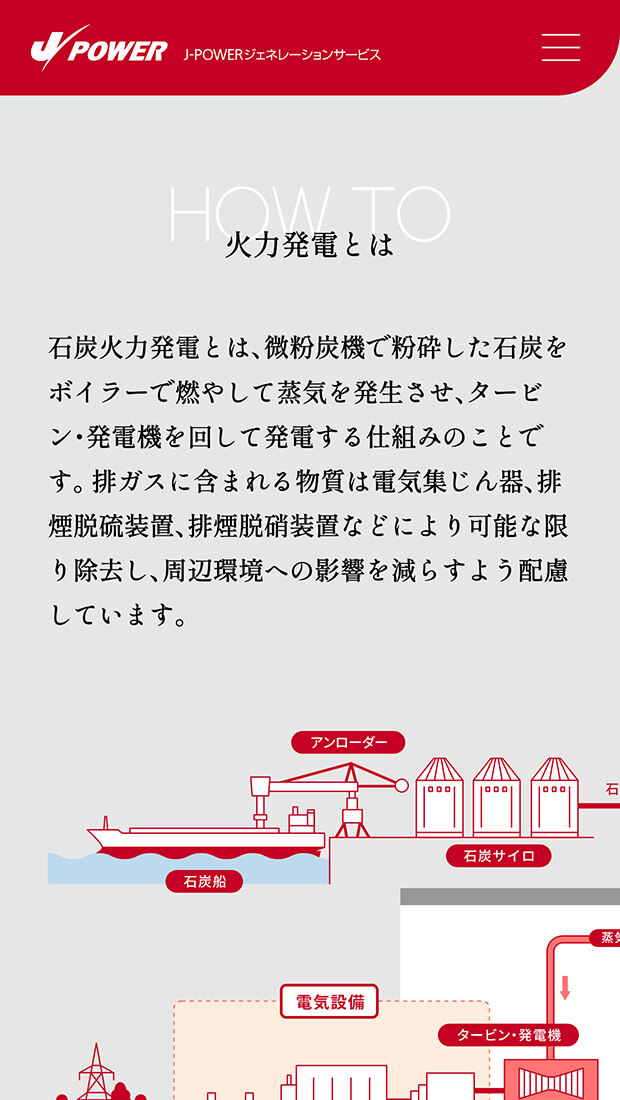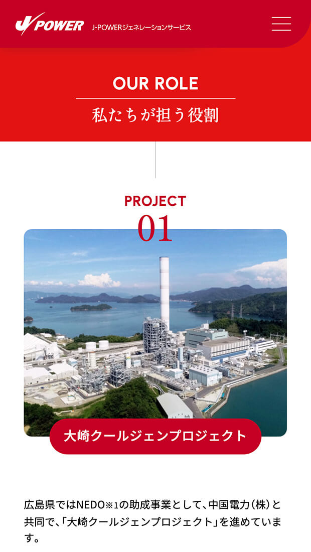 コーポレートサイトはスケール感を大切にしつつも繊細なコピーワークやグラフィックデザイン、スチールカットを駆使し、地域社会へ寄り添い続ける存在としてイメージを形成。また、火力発電に対する様々なネガティブイメージに対し、丁寧にコンテンツを作り込んでいくことで、本質的な理解促進を図っています。