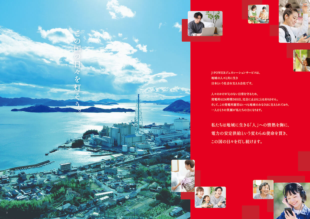 電源開発株式会社(J-POWER)様の主要グループ企業として、火力発電を中心に事業を展開しておられるJ-POWERジェネレーションサービス様。この度は、「地域社会との共生」というクライアント様が願っておられる姿勢を常に念頭におきながら、クリエイティブ刷新をトータルでサポートさせていただきました。