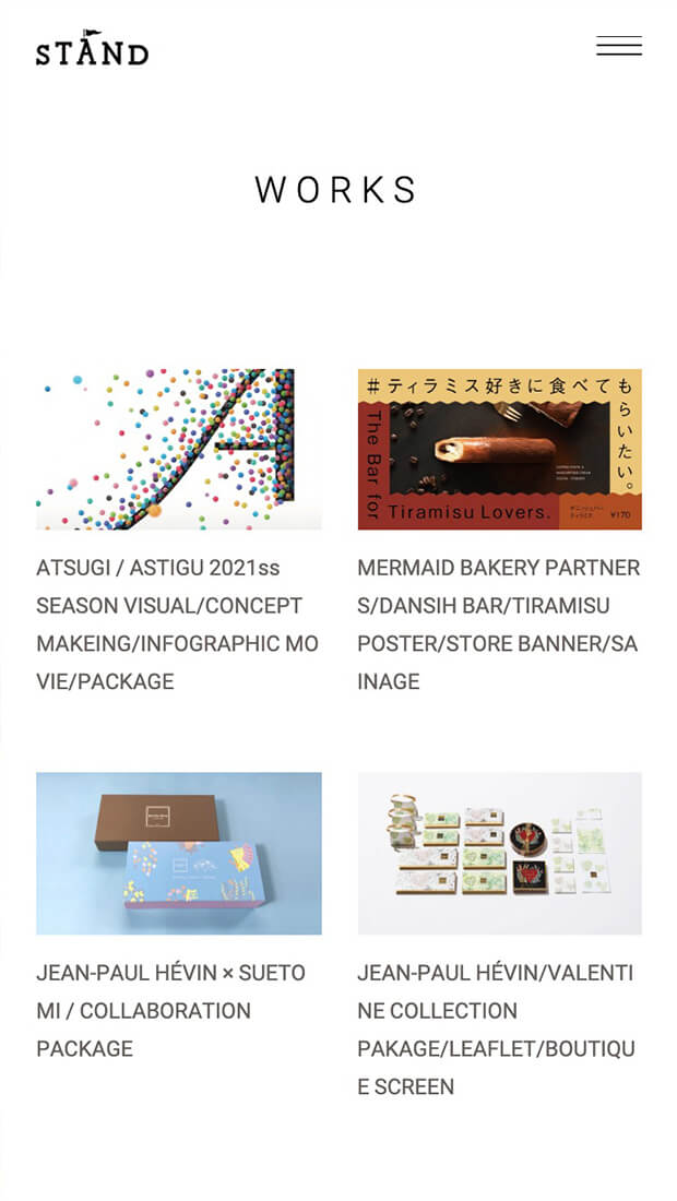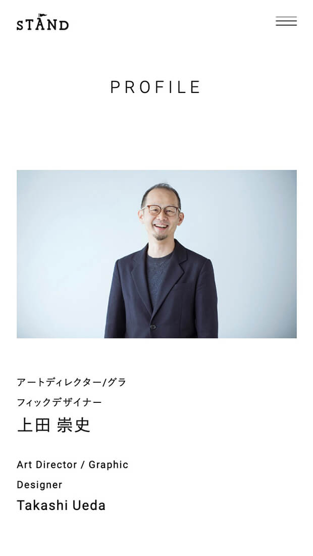 アートディレクター・グラフィックデザイナーの上田 崇史氏が代表を務める「STAND.inc」様のコーポレートサイトを制作させていただきました。上田崇史氏は広告制作会社・大手広告代理店を経て2016年に「STAND inc.」を設立された、今後の活躍が期待されるクリエーターの一人です。コーポレートサイトではこれまで手掛けてこられた作品から最新の作品まで閲覧でき、作品ごとに上田氏独自の世界観、アイデアと閃きを感じとることができます。