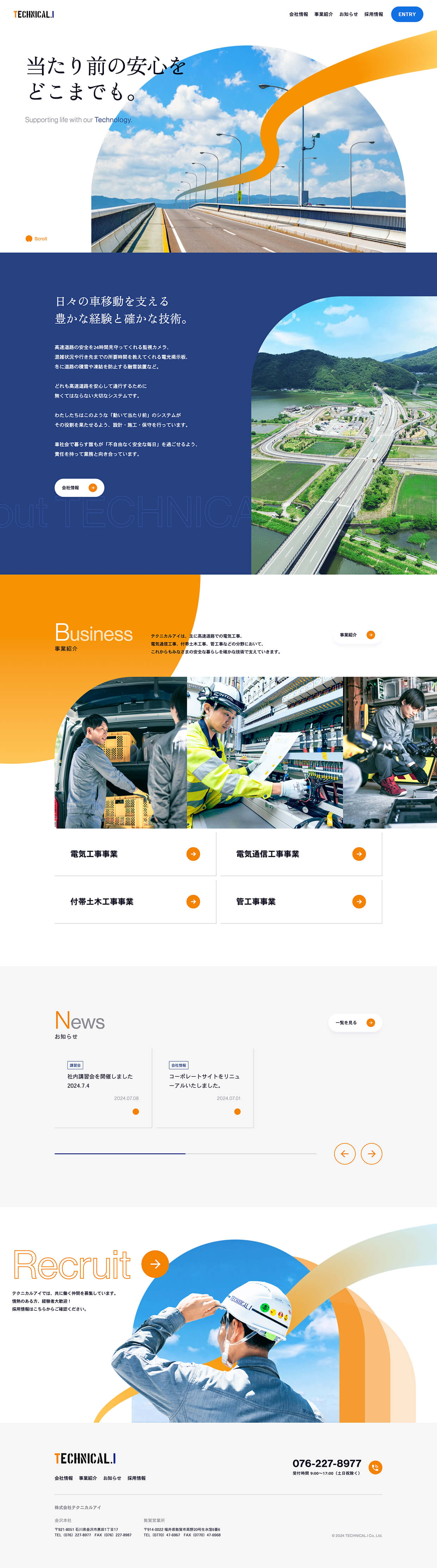 正確で品質の高い技術力が何よりも重要だという考えのもと、多岐にわたる大規模な事業にも数多く携わっておられるテクニカルアイ様の誠実な姿勢をサイトデザインの世界観にもしっかりと反映しました。