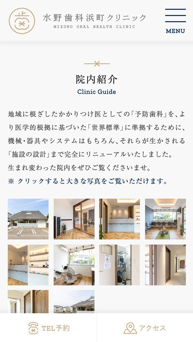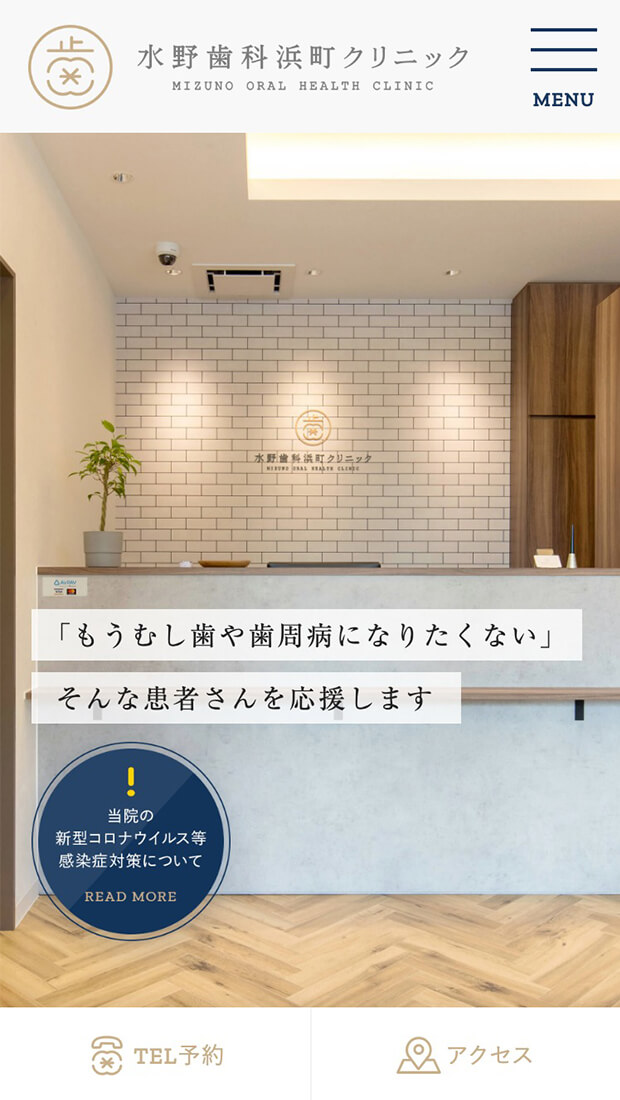 白山市美川にある「水野歯科浜町クリニック」様。事業継承に伴うクリニック名の変更や建物のリノベーションとあわせ、ロゴデザインやサイトリニューアルなど全面的なリブランディングをお手伝いさせていただきました。「虫歯にならない口内環境を作る予防歯科」が特徴であることから、ロゴマークでは「虫歯を止めて、歯を守る」ことを表現、またメインターゲットである女性に強く訴求するため、落ち着きと上品さのあるブランドデザインを心がけました。