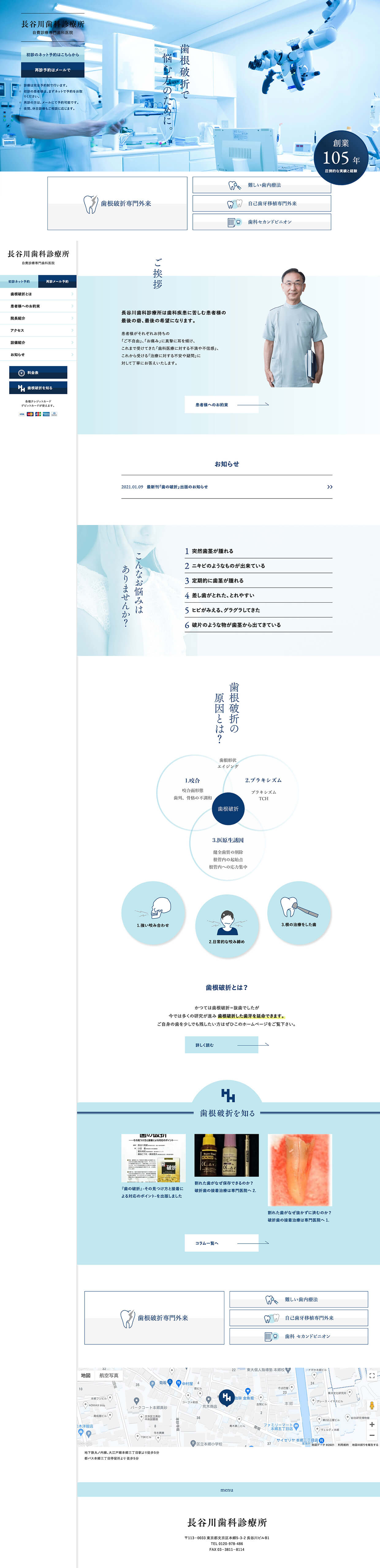 歯根破折でお悩みの方に対応する「長谷川歯科診療所」様。自費診療専門歯科医院として「歯科疾患に苦しむ患者様の最後の砦、最後の希望になります」の想いのもと、創業102年の圧倒的な実績と経験により全国から患者様が来院され、一人ひとりに丁寧に向き合っておられます。