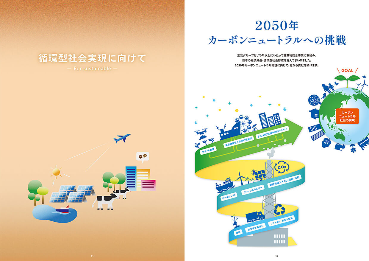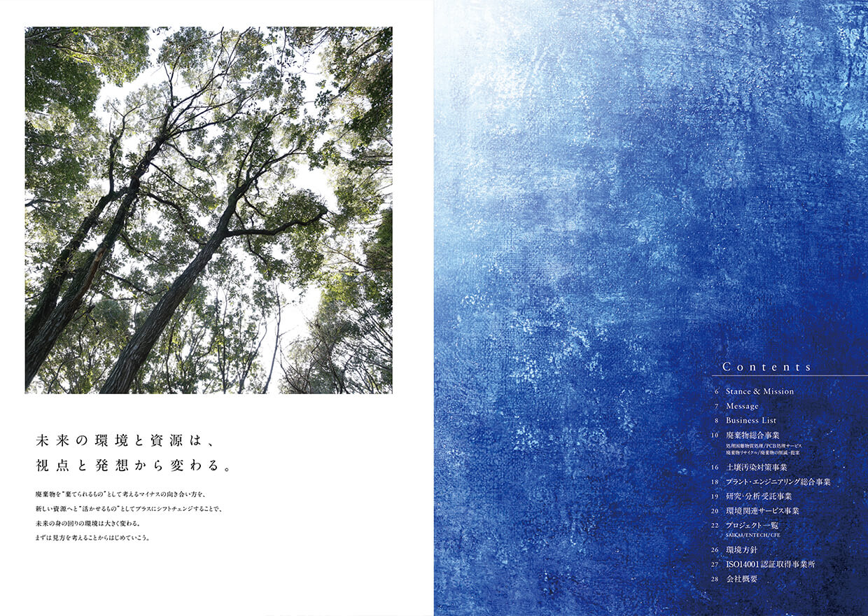 本プロジェクトでは、「環境と資源を守る」という既存のスローガンに加え、新たに「廃棄物に対する目線を未来に。」というブランドコンセプトを立ち上げました。廃棄物をただの廃棄物で終わらせず、新たな資源に生まれ変わらせることで、資源循環型社会の実現に貢献する意志を示されています。弊社ではその大きなビジョンへのサポートとして、webや会社案内などの各種ツール制作を通してブランディングをお手伝いさせていただきました。今後も従来の廃棄物事業の枠を超えたより大きな展開が予想されますが、引き続きお力になれるよう尽力して参ります。