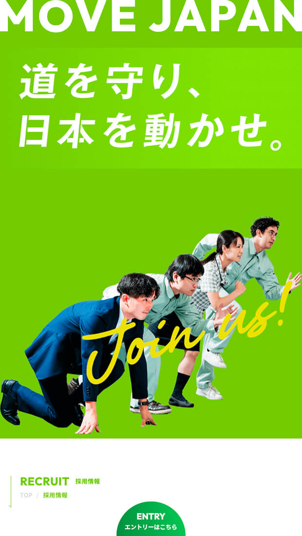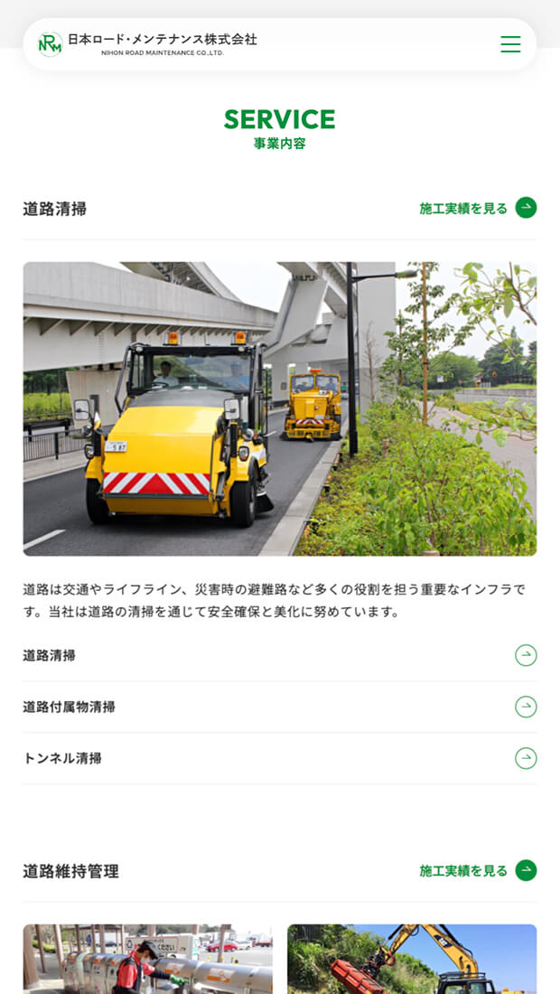 一般道路・高速道路の清掃や維持管理を業務領域とされる日本ロード・メンテナンス株式会社様。企業ブランディングとしてMVVを策定、その後のコーポレートサイト制作まで一貫してサポートさせていただきました。日本ロード・メンテナンス様が大切にされている価値観や思いを『日本の道の「いつも」と「もしも」を守り抜く』というコピーで表現し、サイト全体のデザインにもしっかりと世界観として反映しました。
