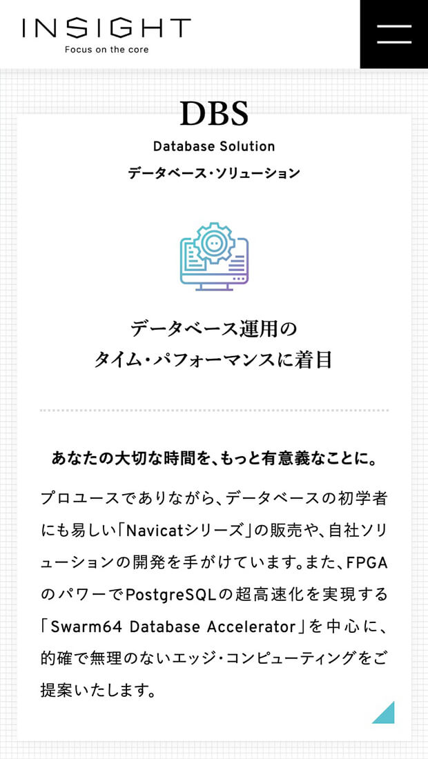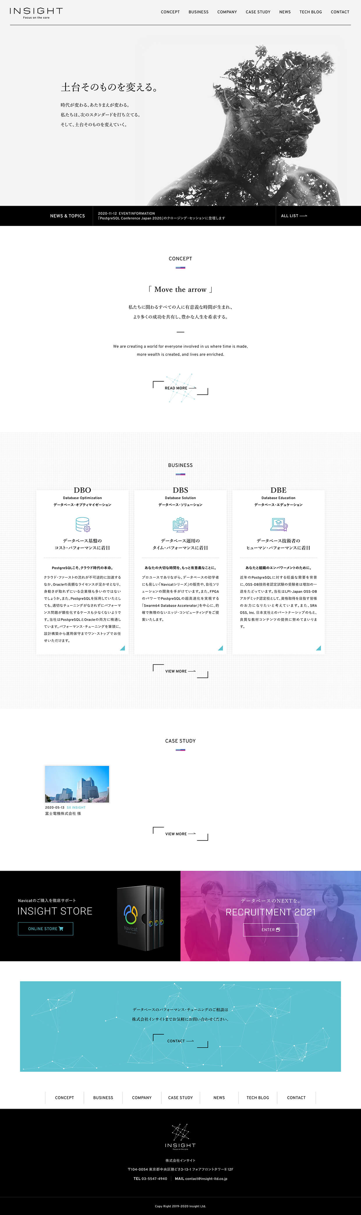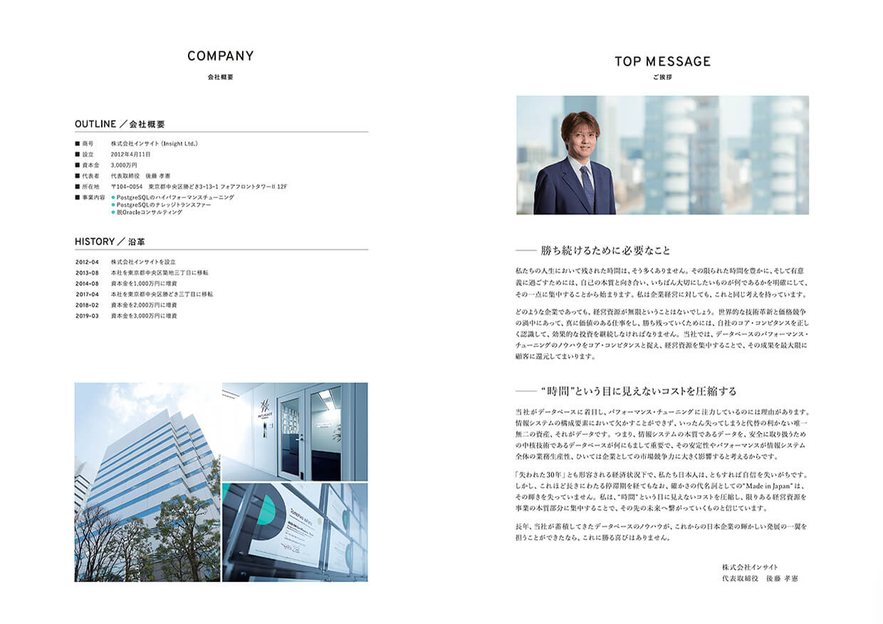 株式会社インサイト様は、国内唯一である「PostgreSQLのハイパフォーマンスチューニング」サービスを展開する企業です。コーポレートブランディングおよび事業ブランディングの構築をサポートさせていただいております。
