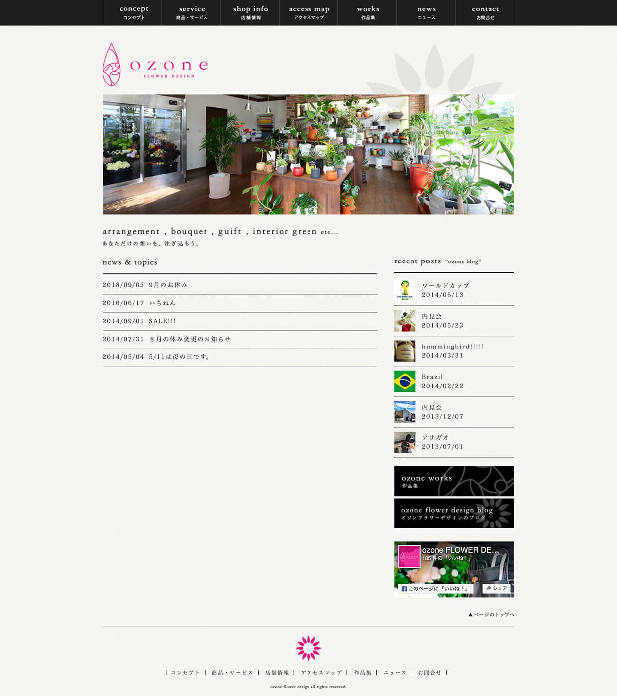福井県から白山市に移転OPENされたflower designのozone様。センスあるアレンジメントやインテリアグリーンなど幅広い層からお花に関するご依頼を受けておられま。オーナーの西本氏は、クラブイベントでもDJとして活躍している一面も持っており、またセレクトされたアロマフレグランスなどの小物も随時要チェック。BRESTとは過去にもアロマフレグランス作りの体験ワークショップも共同開催させていただいております。また、母の日に息子からサプライズ提案など、シチュエーションの提案もしてもらえることも魅力です。