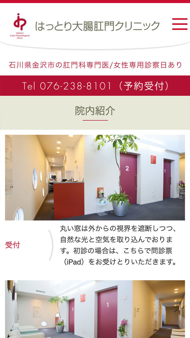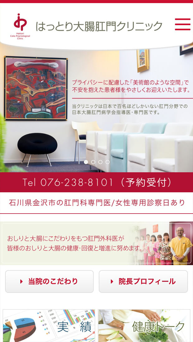 おしりと大腸に特化し、実績と診療手術に定評がある「はっとり大腸肛門クリニック」様のサイトリニューアルです。院内は、Jazzが流れ、一つひとつのインテリアにさり気ない、そして患者様への気遣いと配慮のセンスを感じる特徴をウェブデザインにも表現しました。